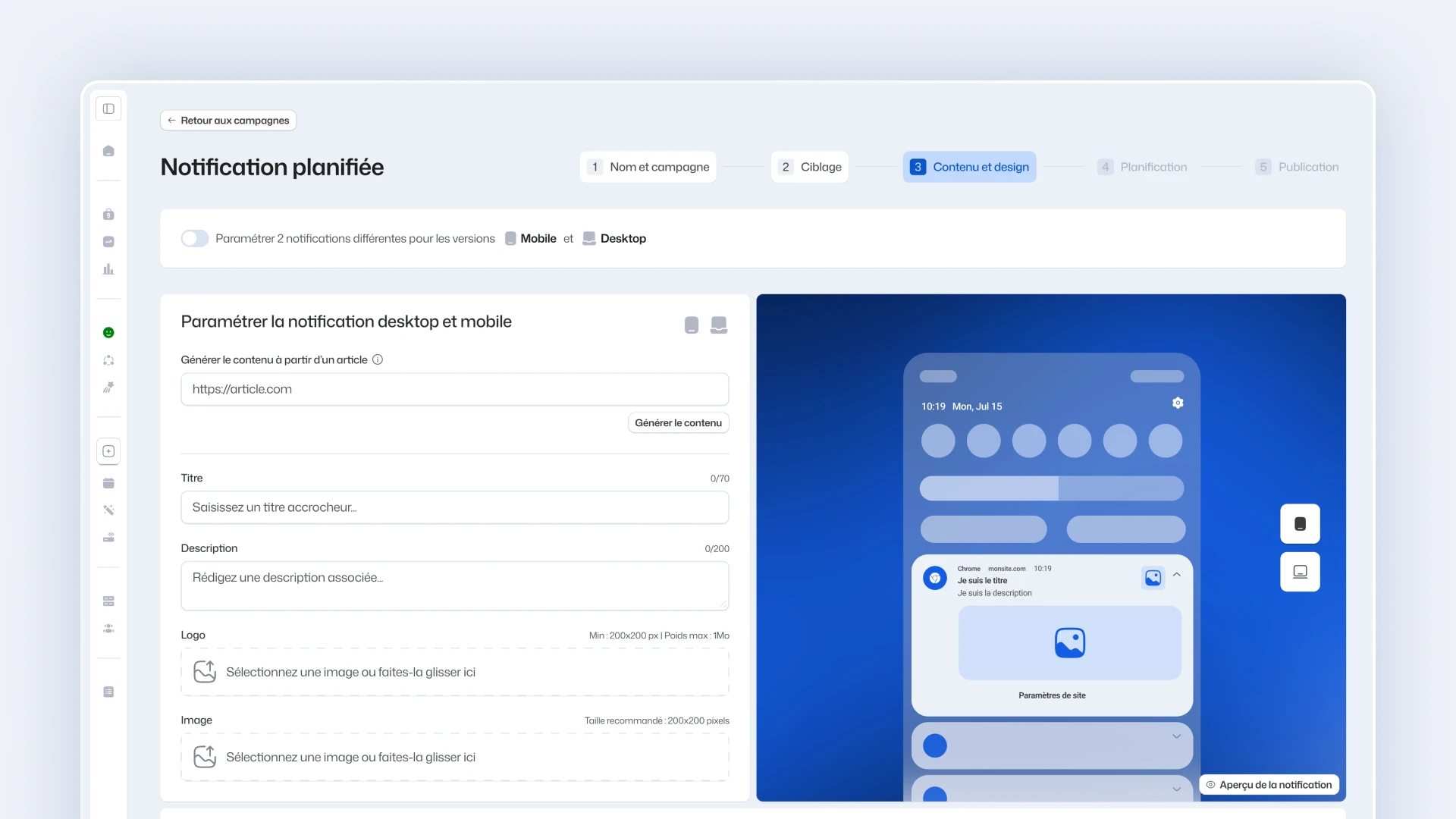 Moderniser l’interface et simplifier l’expérience d’un outil de Web Push Notification utilisé par des équipes marketing au quotidien.